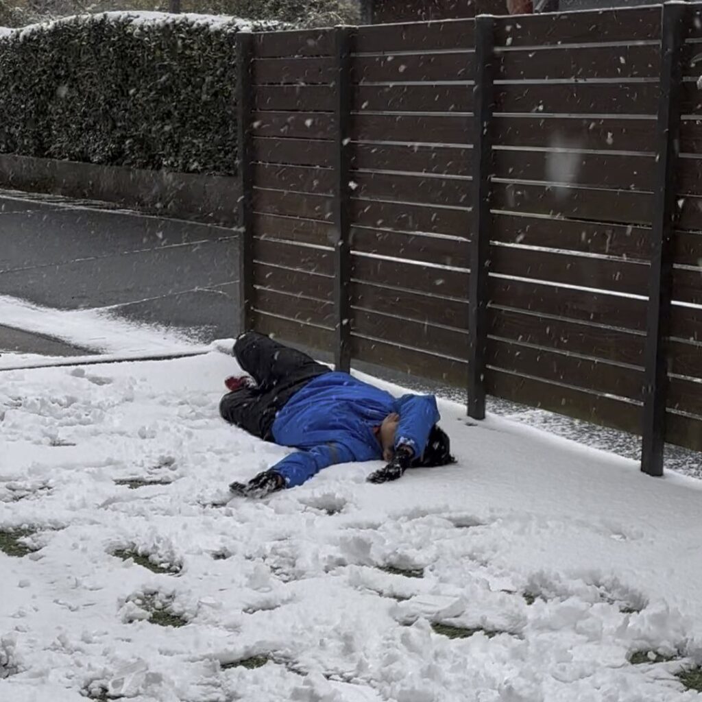 雪遊びの様子やら、泥混じりグレーの雪だるまやら(笑)